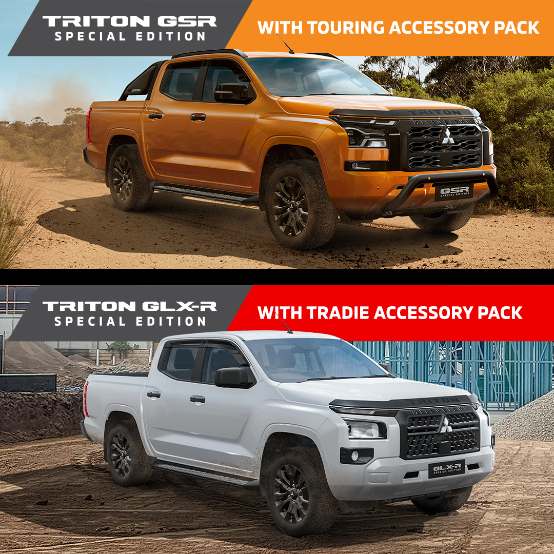 The Triton GSR Special Edition with Touring Accessory Pack and the Triton GLX-R Special Edition with Tradie Accessory Pack are here. Purpose built for taking on the great outdoors and the toughest worksites, each of these special edition Tritons come with stylishly practical accessories for better value. So don’t wait for a special occasion – book a test drive today.